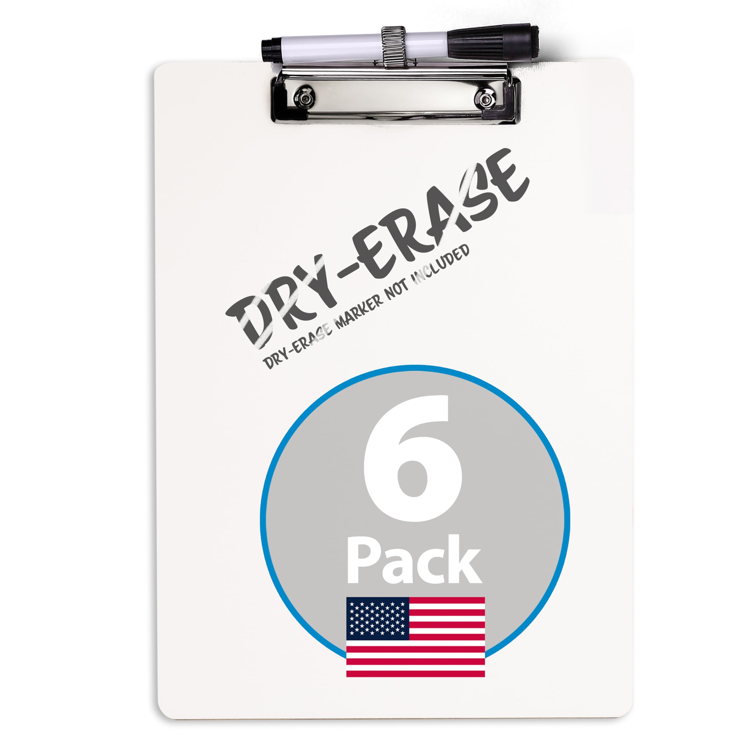Stay organized, reduce paper waste, and boost productivity with this 6-pack of 12.5" x 9" dry erase clipboards—perfect for teachers, coaches, healthcare workers, and busy professionals. Each clipboard features a non-staining dry erase surface, a low-profile metal clip that holds up to 70 sheets, and a built-in flexible pen holder that fits most pens and markers. Made in the USA with durable, eco-friendly materials, these reusable clipboards are built to last and ideal for high-use environments like classrooms, offices, and the field.