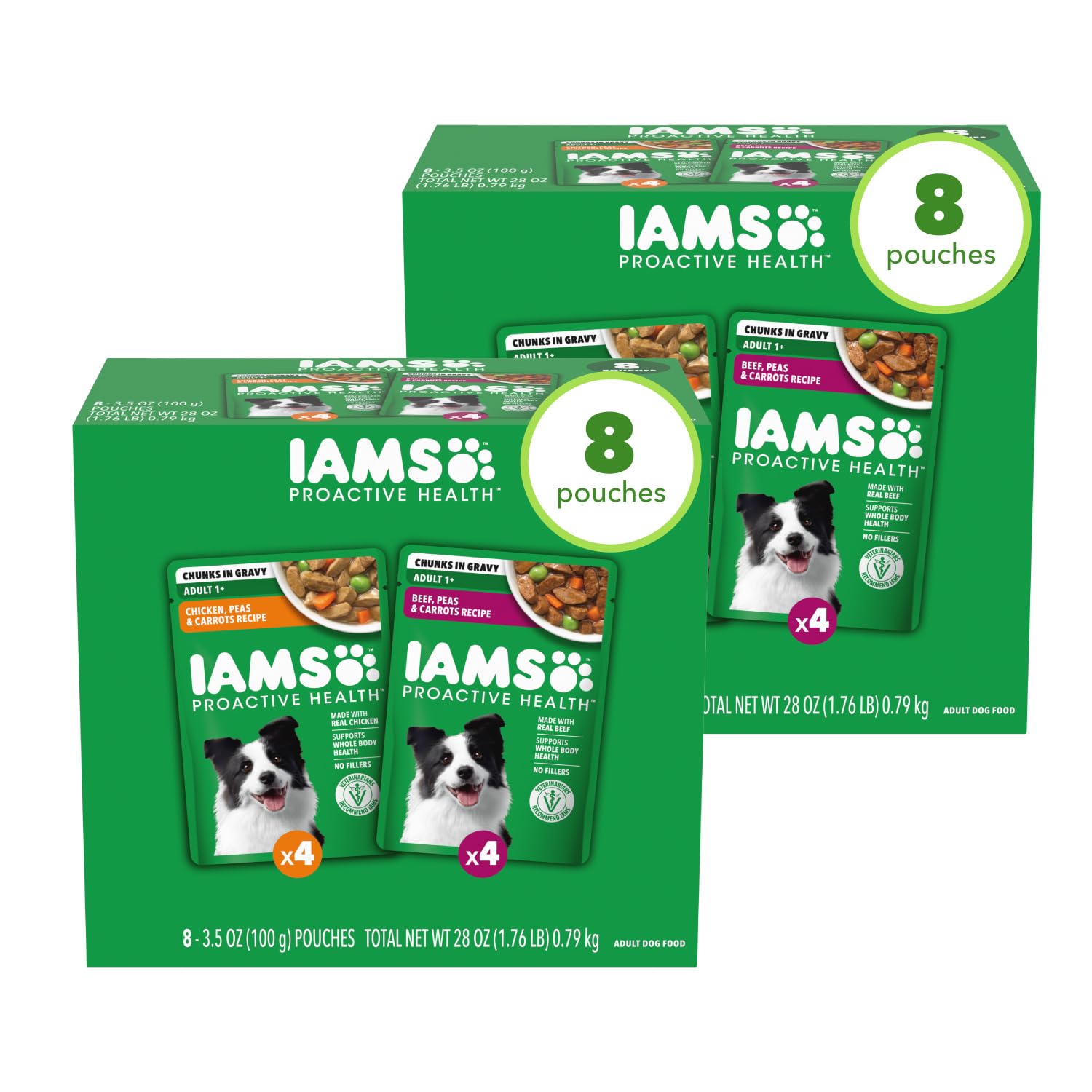 IAMS Proactive Health Adult Wet Dog Food Variety Pack, 3.5 oz. Pouch, (8 Count) (Pack of 2)