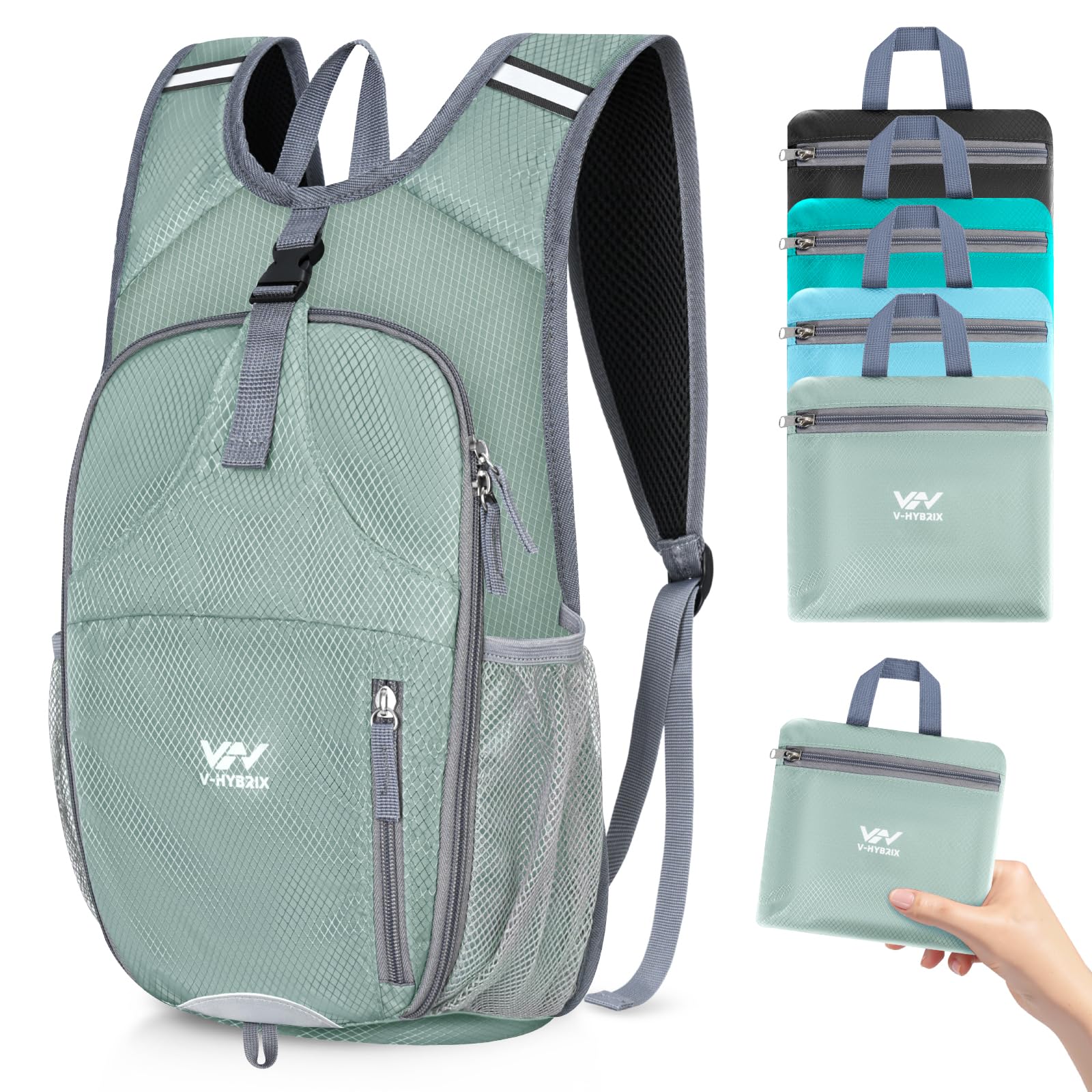 VHYBRIX 15L Foldable Hiking Backpack,Lightweight Packable Waterproof Machine Washable Daypack with Chest Strap,Small Folding Pack for Travel/Walking for Men&Women-0.52LB Grey