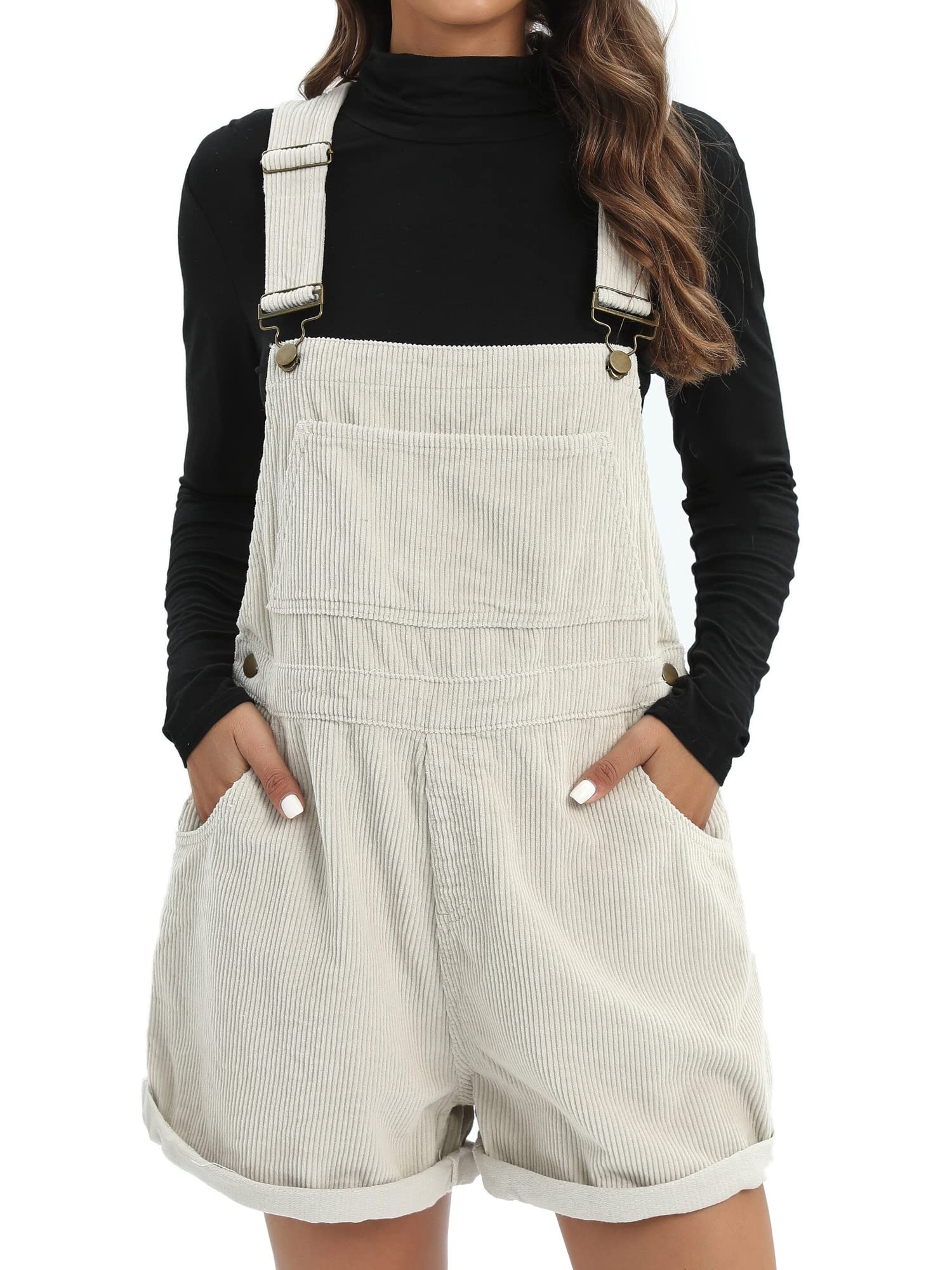 Great deal on Justalwart Overalls Women Shorts Loose Fit Adjustable Strap Denim Bib Roll Cuff Shortalls Romper at Amazon.