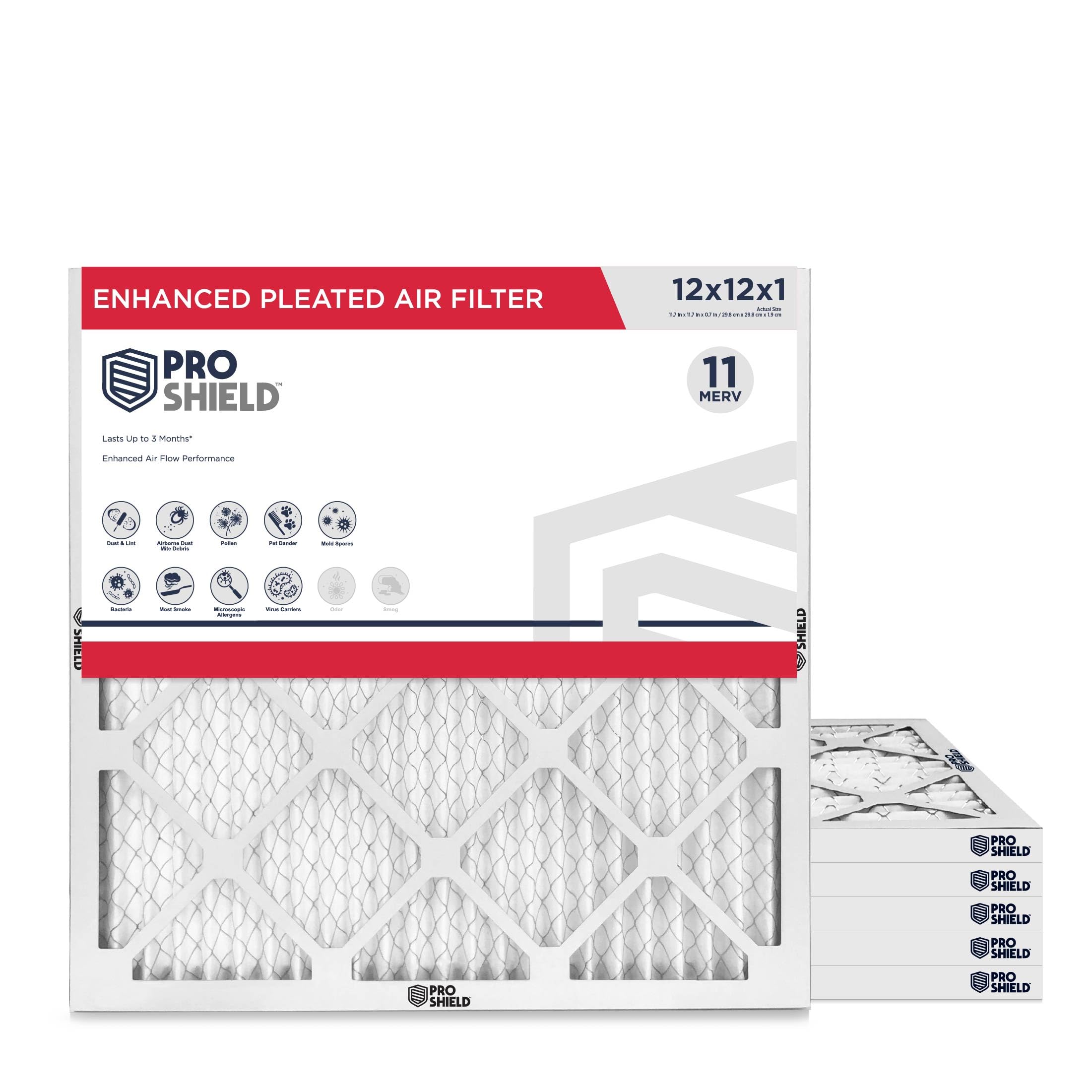 This pack of 6, MERV 11 filter is ideal for households that need more than basic air quality due to trapping dust, pollen, mold spores, pet dander, dust mites, smoke particles, allergens, and some airborne bacteria
