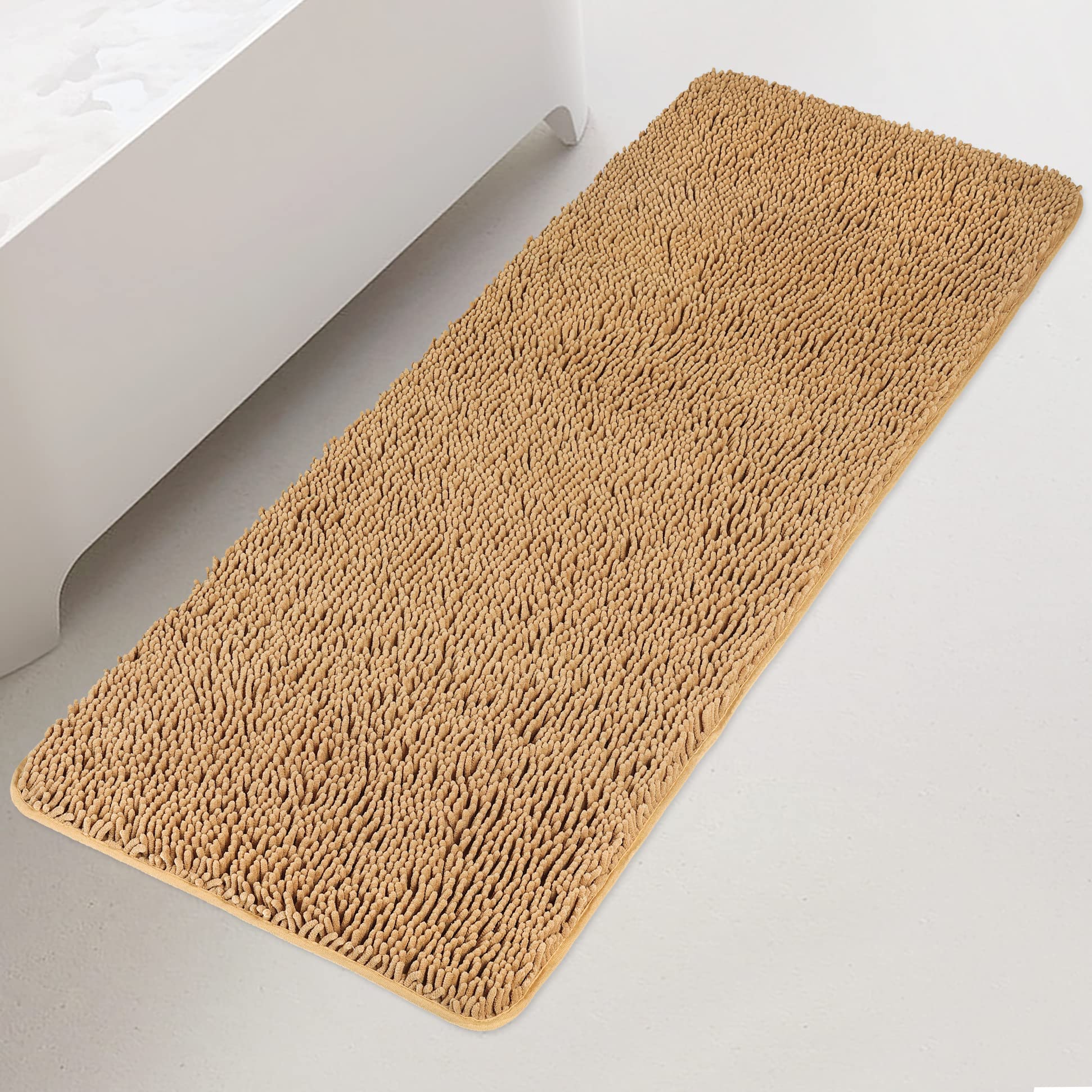 Yeaban Bathroom Runner Rug 24 x 60 Inch – Thick Chenille Long Bath Mat | Absorbent and Washable Extra Large Bath Rug Non-Slip, Plush Runner Rug for Bathroom, Shower, Sink - (Tan)