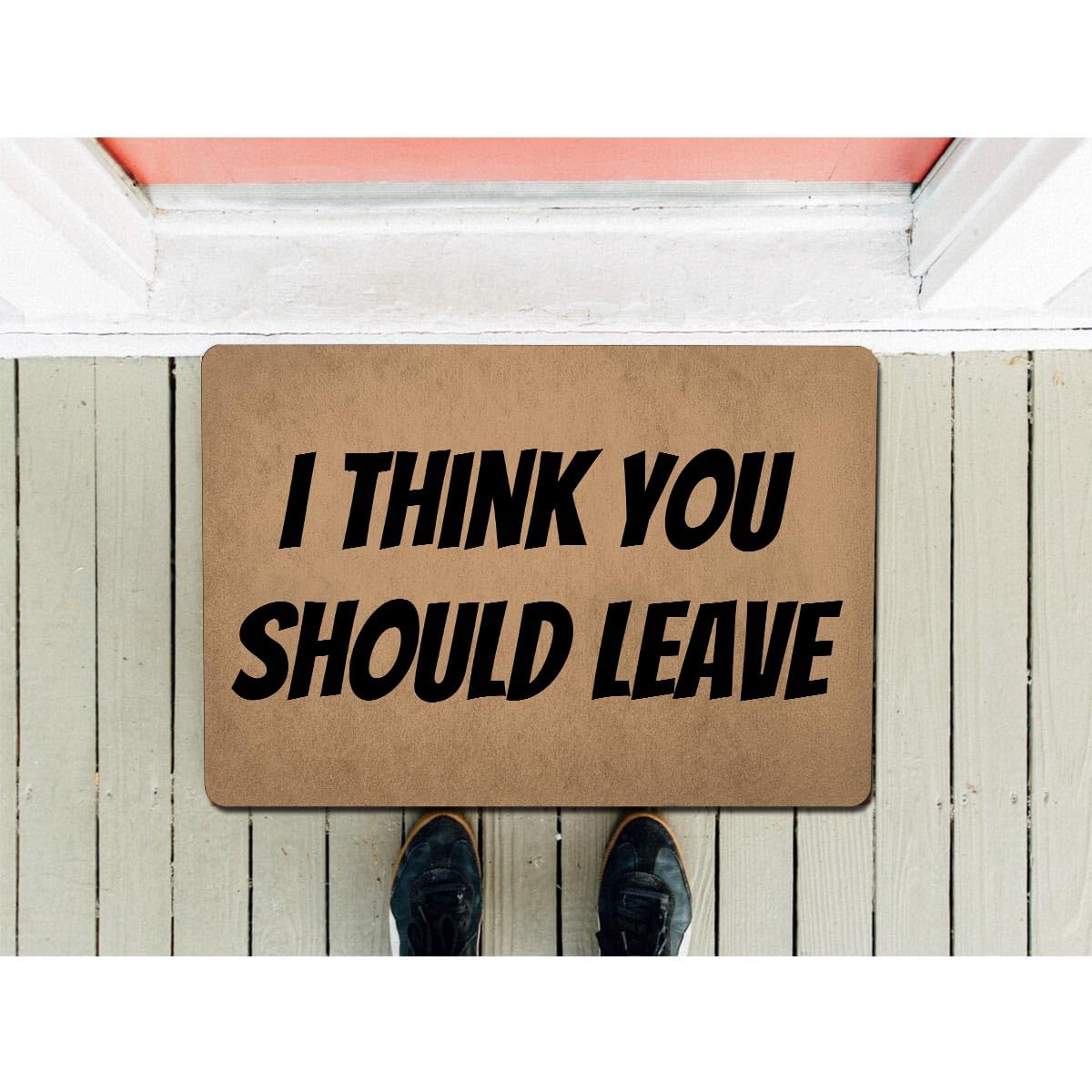 Funny Welcome Doormat (23.6 X 15.7 in) Anti-Slip Rubber Back Mat Prank Novelty Gift Entrance Way Kitchen Rugs Front Door Patio Decor (I Think You Should Leave Not Welcome Go Away)