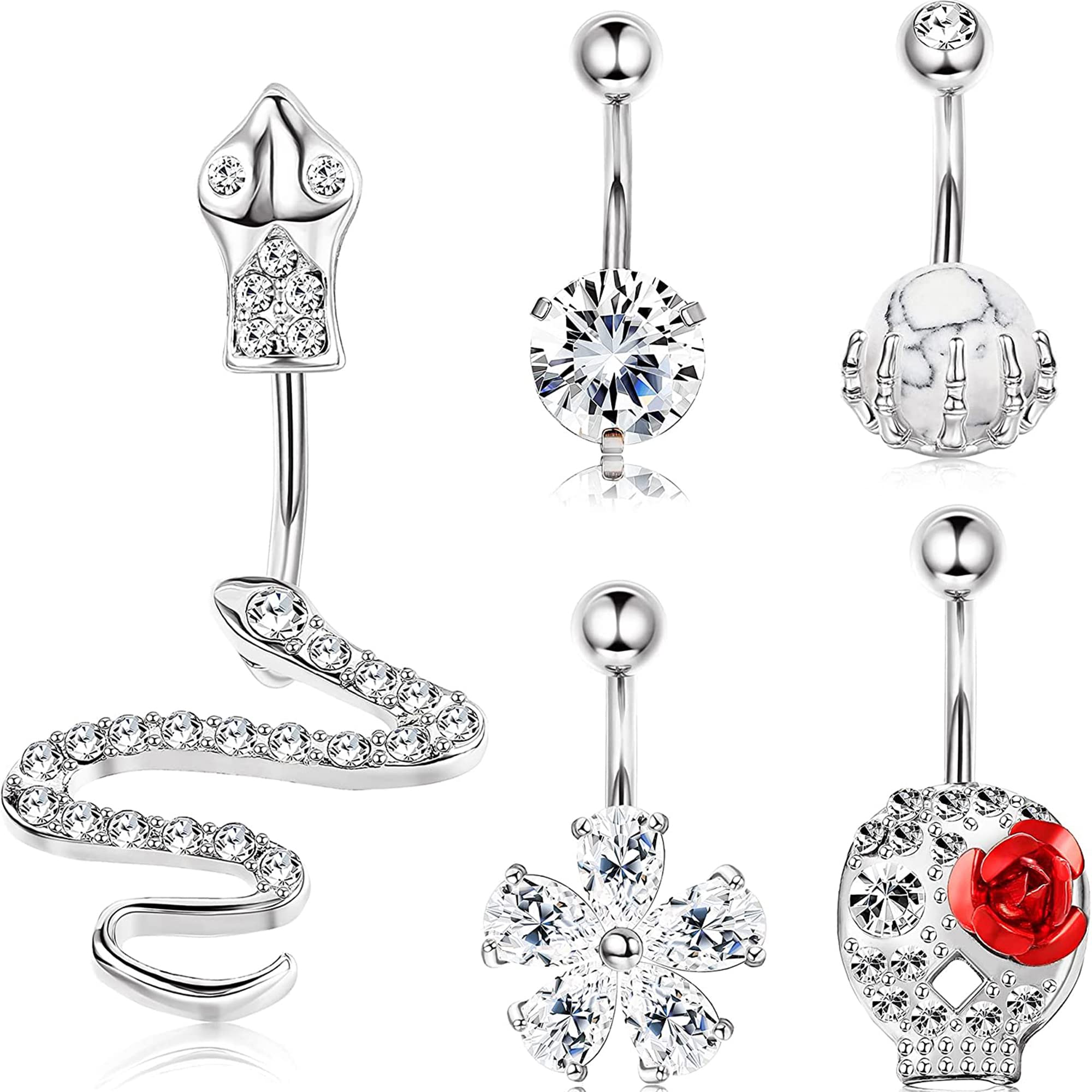 ZZHDCC 14G Cubic Zirconia Belly Button Ring Stainless Steel Belly Rings for Women Opal Crystal Navel Rings Barbells Dangle Flower Belly Piercing Jewelry