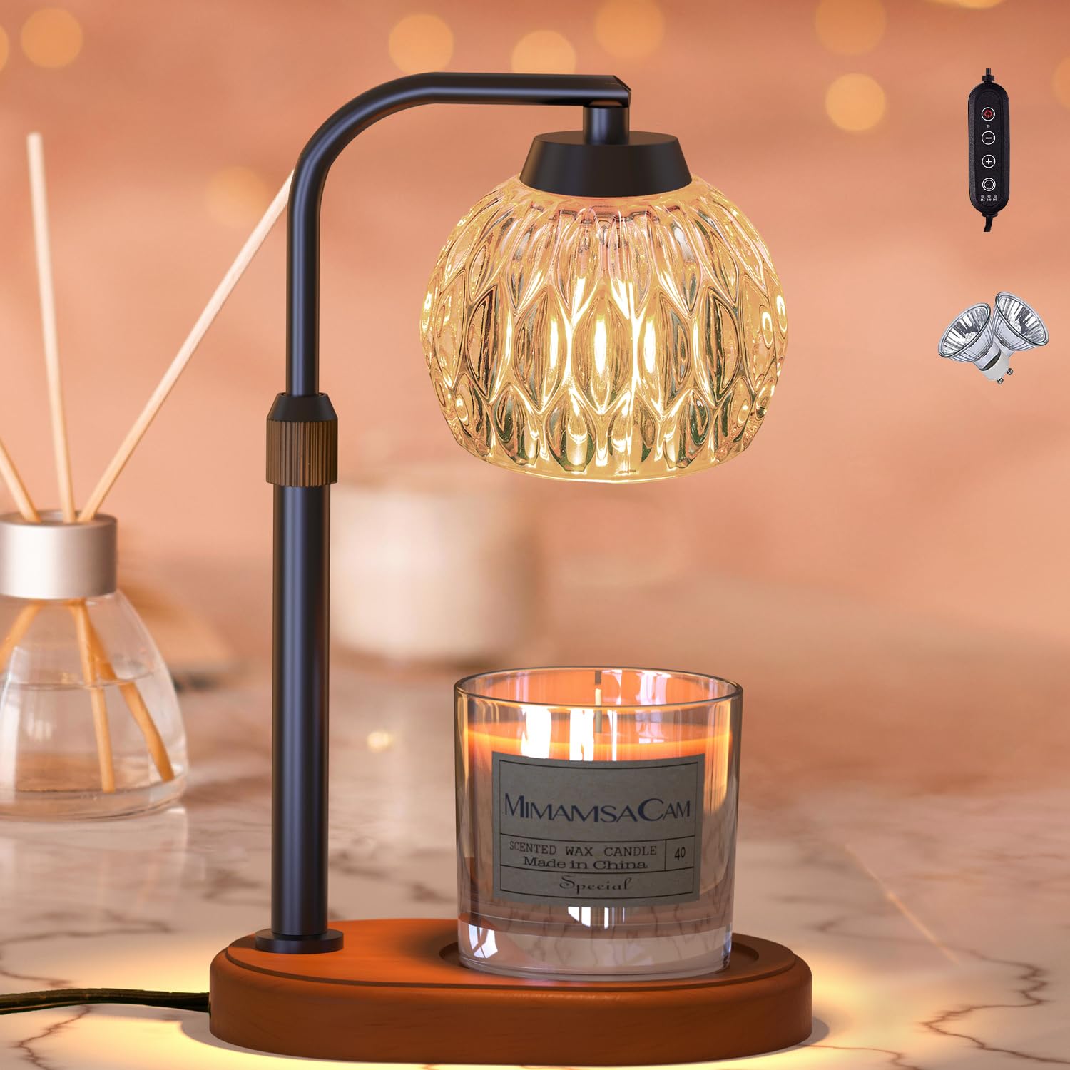 MimamsaCam Candle Warmer, Candle Warmer Lamp with Timer/Dimmer,Wax Melt Warmer for Bedroom décor, Gift for Mom, Height Adjustable to Fit Large Yankee Candle Jars, 2X 50W Bulbs