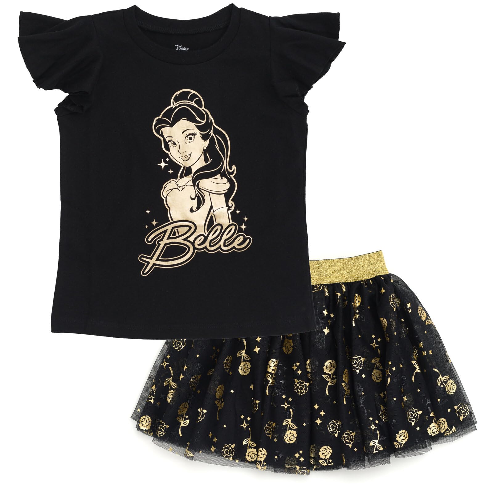 Disney Junior Girls Metallic Print T-Shirt and Mesh Tulle Skirt Outfit Set Toddler to Big Kid Sizes (2T - 14-16)