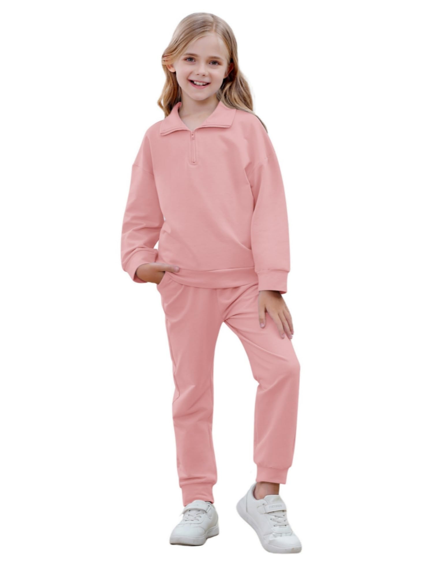This Corfrute two-piece sweatshirt and sweatpants set offers a budget-friendly option for girls aged 5 to 13 seeking comfortable, casual springwear. The long-sleeve design suits cooler days, and the coordinating pieces provide an easy, putt