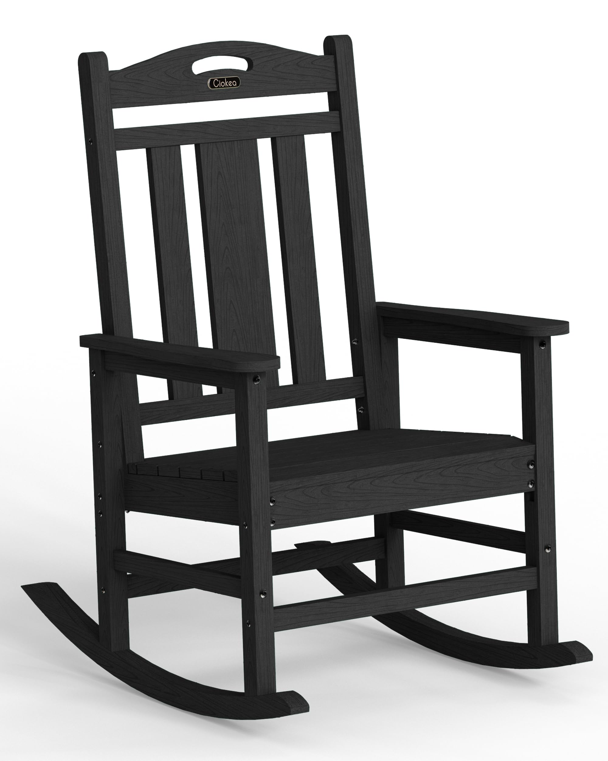 Ciokea Oversized Outdoor Rocking Chair, 380lbs Heavy-Duty Large Patio Rocker, Weather Resistant & Anti-Fade Porch Chair, High Back Cozy Rocking Chair for Outside, Fire Pit, Deck, Garden, Black