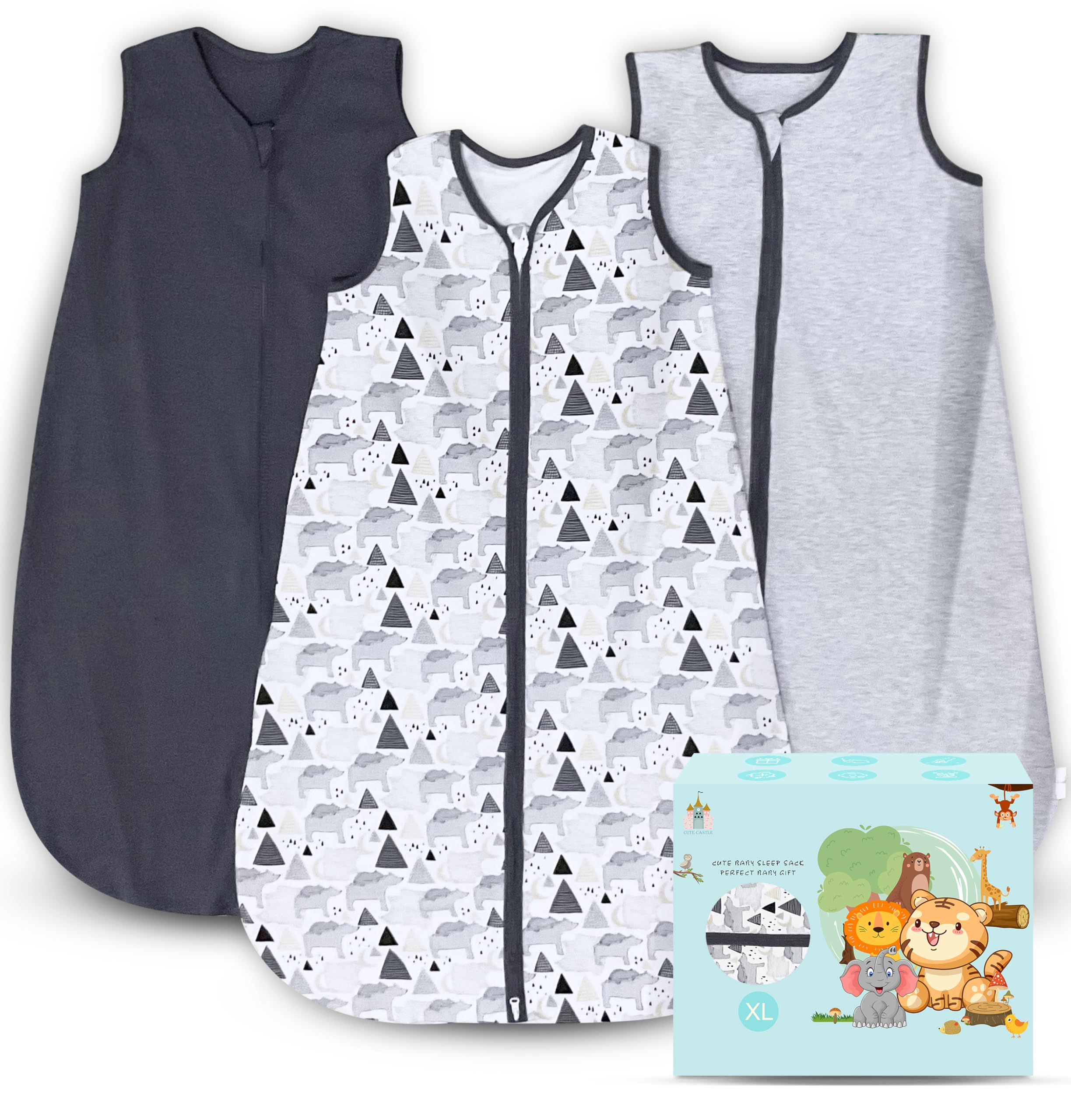 This 3-pack of lightweight baby sleep sacks from Cute Castle offers a breathable cotton fabric ideal for toddlers aged 18-24 months. Each sack features a 2-way zipper for easy diaper changes and a TOG rating of 0.5, suitable for warmer room