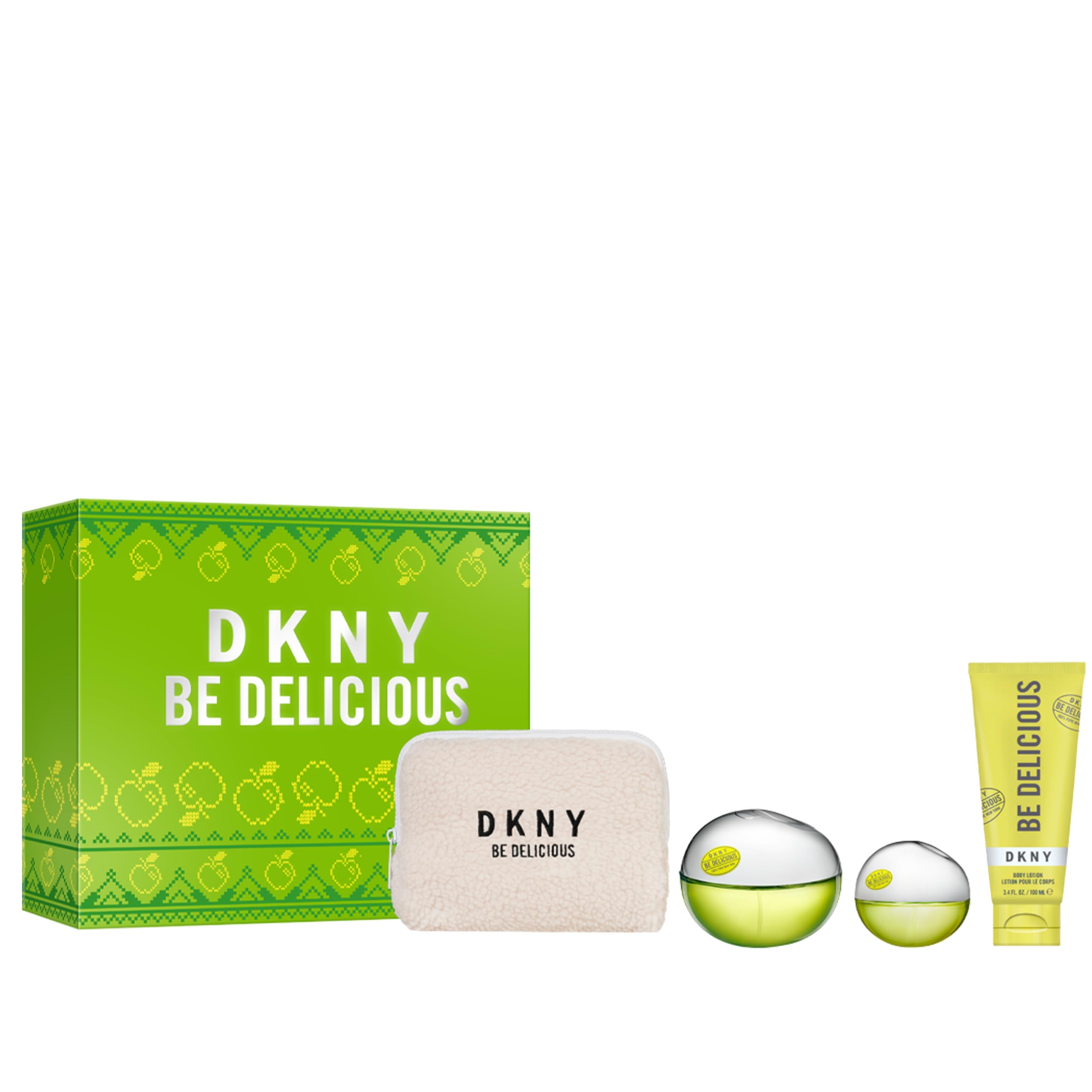 DKNY Be Delicious by Donna Karan for Women - 4 Pc Gift Set 3.4oz EDP Spray, 0.5oz EDP Spray, 3.4oz Body Lotion, Pouch