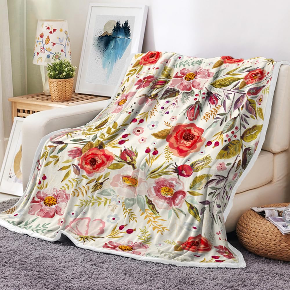 Floral Throw Blanket Vintage Floral Fleece Blanket | Soft, Flannel, Warm, Boho Botanical Flower Fleece Throw Blanket, for Couch Bedroom Living Room 60X70 Inch