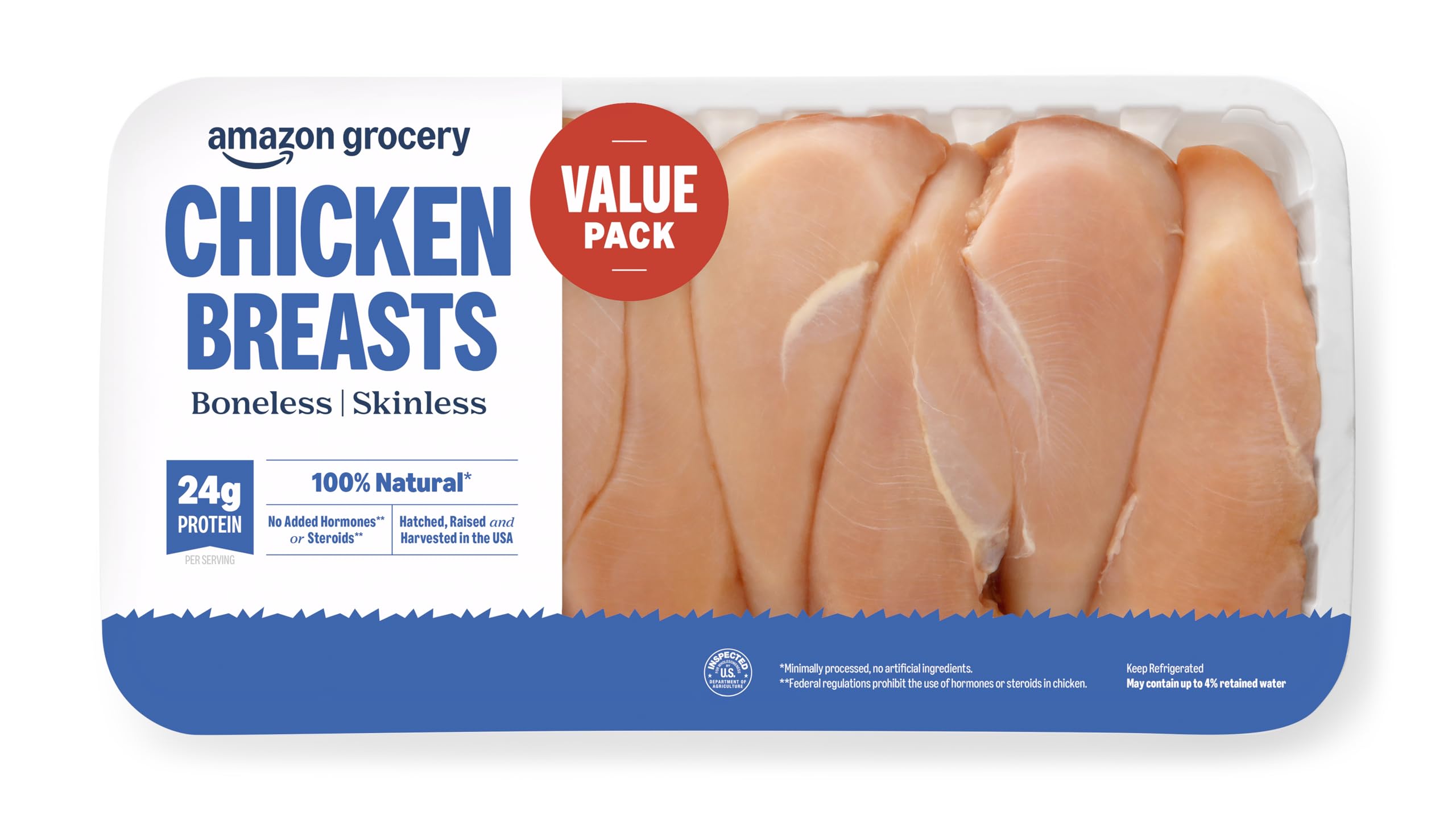 Amazon Grocery, Chicken Breast Fillets Value Pack, Boneless Skinless, 100% Natural, Weight Varies