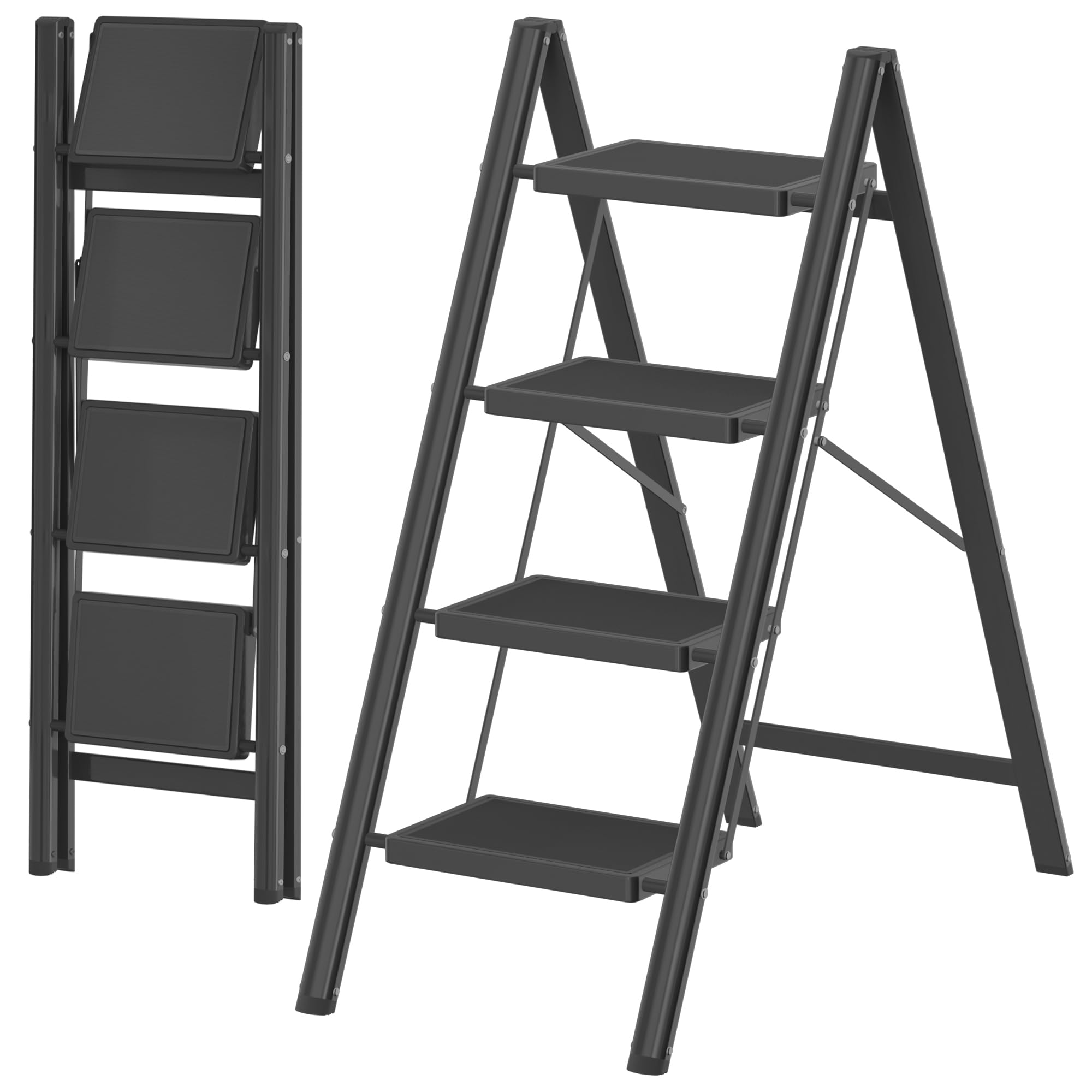 DIAMONDFORGE 4 Step Ladder, Folding Step Stool with Anti-Slip Wide Pedal, Anti-Slip Feet, Sturdiest Steel Construction, Steel Ladder for Home and Office, Black