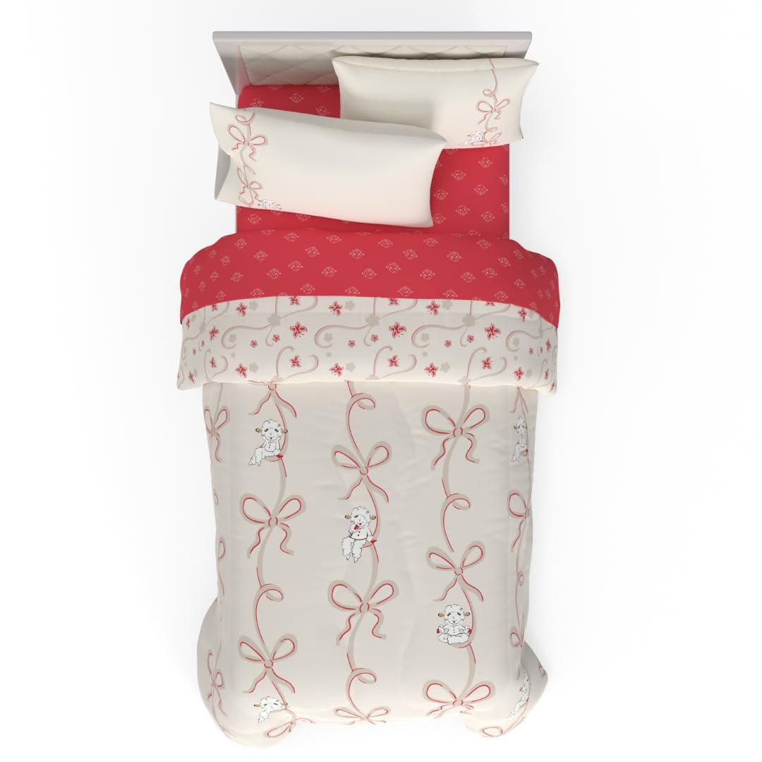 This Lamb Chop 5-piece twin bedding set brings a soft, reversible comforter paired with matching sheets and pillowcases, all crafted from breathable microfiber. It combines vintage charm inspired by a 90s icon with versatile styling options