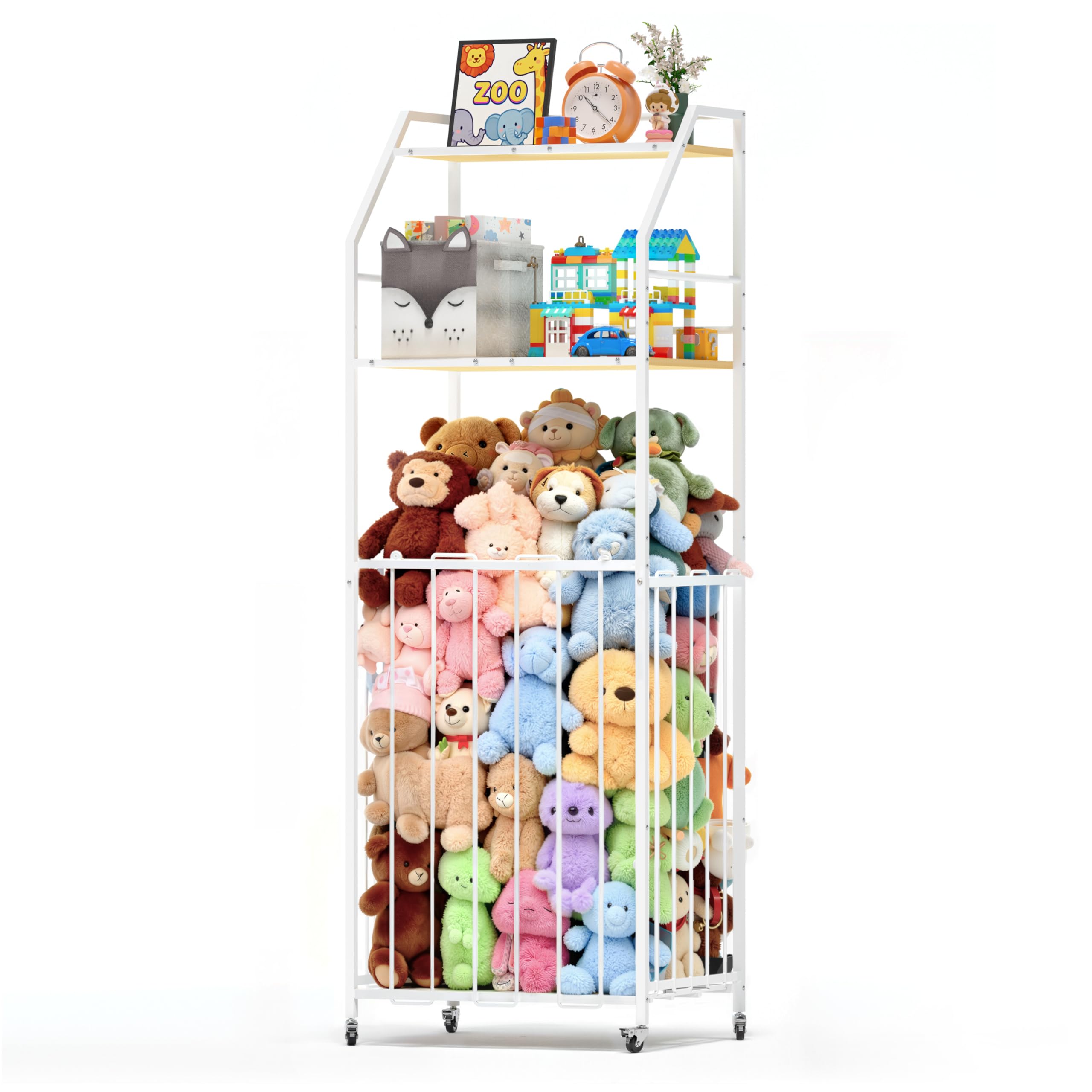 This Yoimori stuffed animal storage offers a large, 3-tier design combining metal frames and wooden shelves to hold a variety of plush toys in one tidy, mobile unit. Its castle-inspired look adds playful charm to kids' rooms while helping,