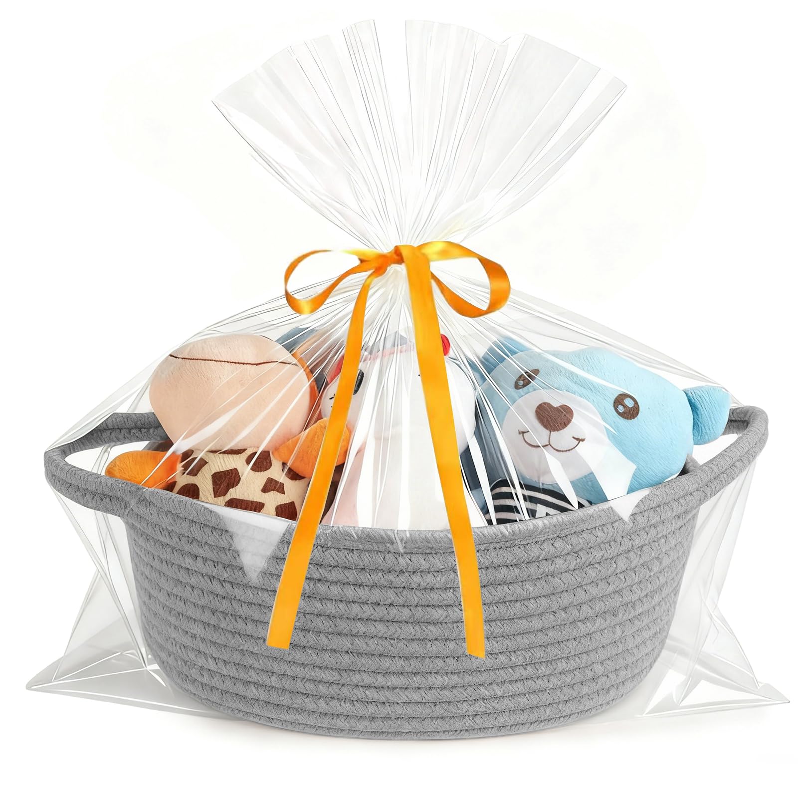 This small gray woven basket from HOBASKET combines a compact size with a sturdy cotton rope design, making it a practical container for gift presentation or organizing baby toys and small items around the house. Its lightweight yet durable