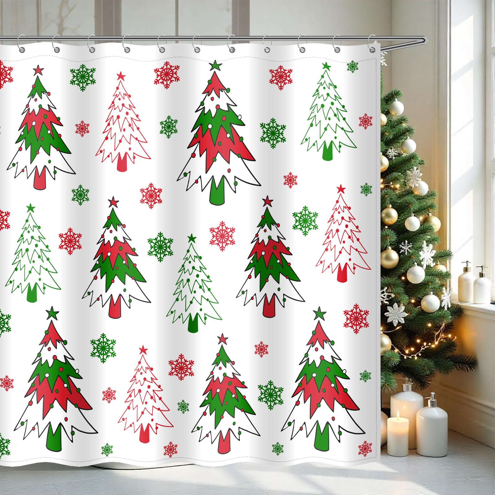 Add a splash of holiday cheer to your bathroom with this vibrant red Christmas shower curtain featuring snowflake designs. Made from waterproof polyester, it measures 72 by 72 inches and comes with 12 hooks for easy installation, making it
