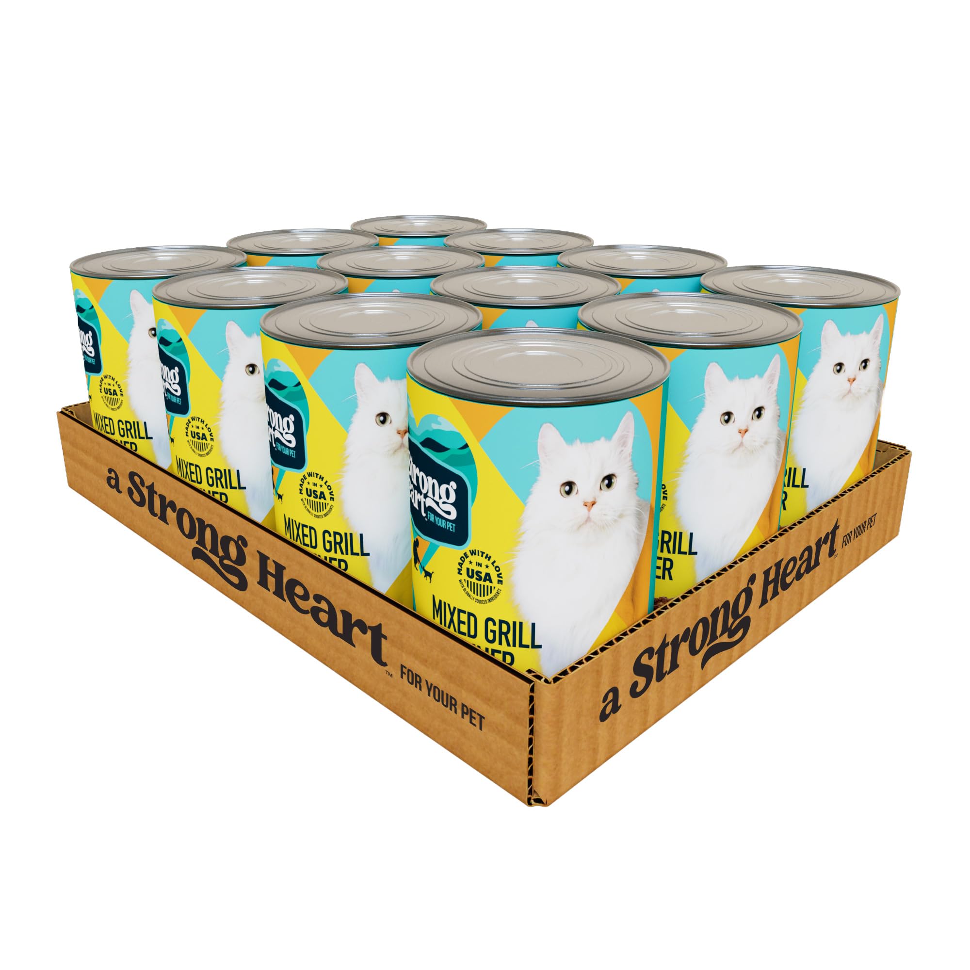 A Strong Heart Canned Wet Cat Food, Mixed Grill Dinner - 13.2 oz Cans (Pack of 12), Made in The USA with Real Chicken & Liver