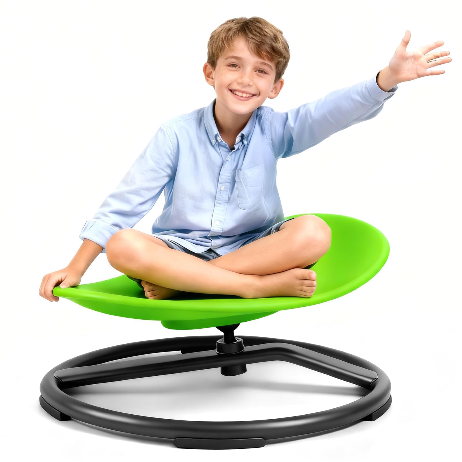 Product Description: Hey parents — if your kiddo is always on the move, spinning, or needing that extra sensory input to stay calm and focused, this sensory swivel chair is a total game-changer. Designed with help from pediatric occupational therapists, this spinning chair for autistic kids delivers gentle 360° vestibular motion that helps boost balance, coordination, focus, and even reduces motion sickness over time. Kids with ADHD or autism love it because it gives them the exact input their bodies crave — all through fun, joyful spinning. The multi-functional design lets them sit, kneel, or lie down and spin safely. Thickened edges keep little fingers protected, and the smooth rotation makes it their favorite calm-down spot or active play buddy — perfect for living rooms, backyards, or homeschool corners. We built it tougher than most with a thicker, stronger metal base and heavy-duty non-slip feet that grip any floor tight with zero wobble. It comfortably supports up to 220 lbs, so even bigger kids can enjoy it worry-free. Made from high-quality, heat-resistant eco-friendly PP material that’s easy to wipe clean and super durable for daily use. Super easy to assemble — clicks together in under 5 minutes — and lightweight enough to move from room to room or take outside whenever you want. More than just a toy, this sensory swivel chair is a thoughtful birthday or holiday gift that supports calmness and joyful engagement. If anything ever feels off, we’ve got your back — just message us and we’ll make it right with a quick exchange or refund. Let your child spin, play, and thrive. Watch them smile, regulate, and grow a little more confident every day. This is the sensory seat so many California families are raving about — give it a try and see the difference for yourself!