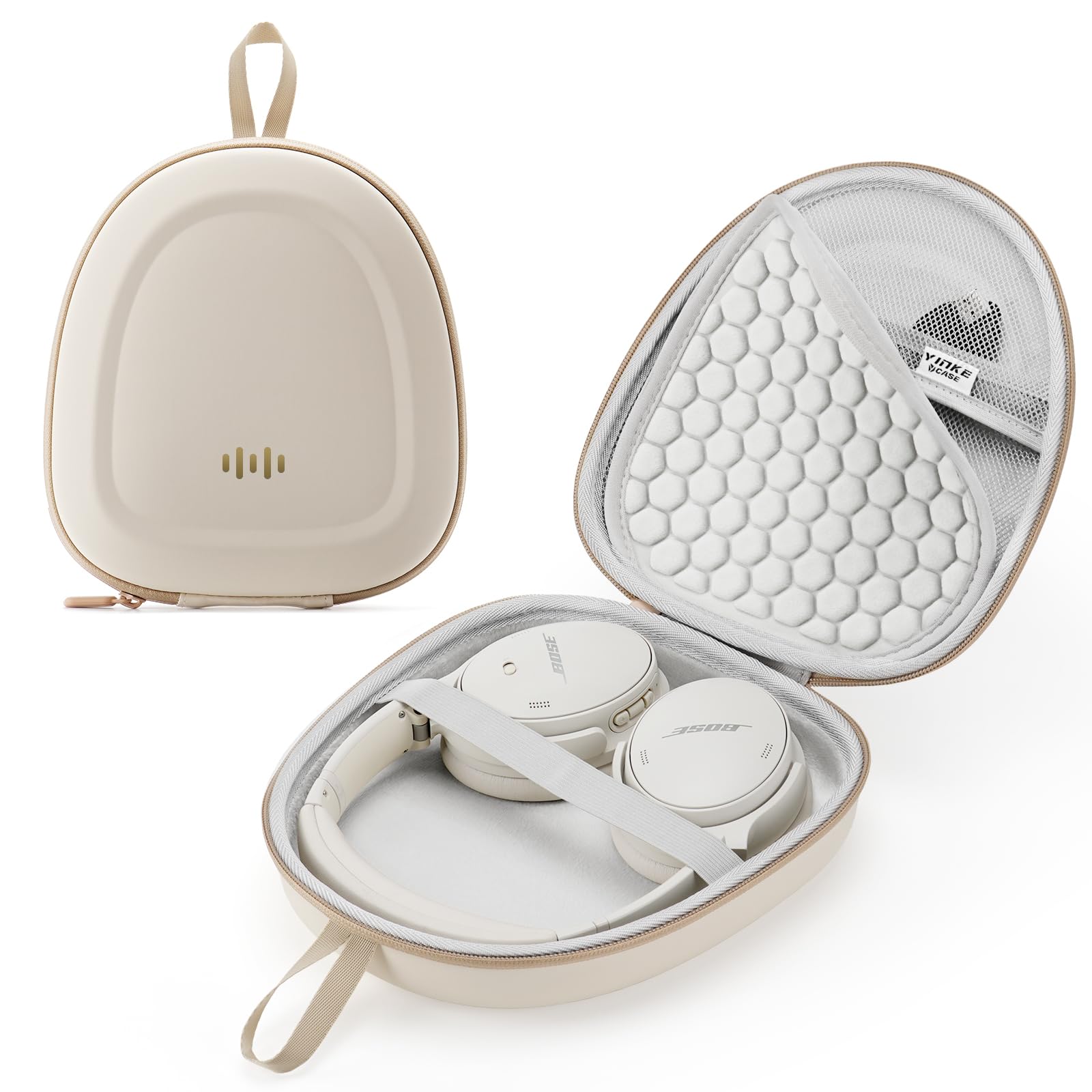 Headphone Hard Case Replacement for Bose QuietComfort Ultra QC45 QC35 QC25 QC15 QCSE Over-Ear Headphones, Super-Slim Upgrade PU Universal Portable Travel Organizer Bag (Beige)