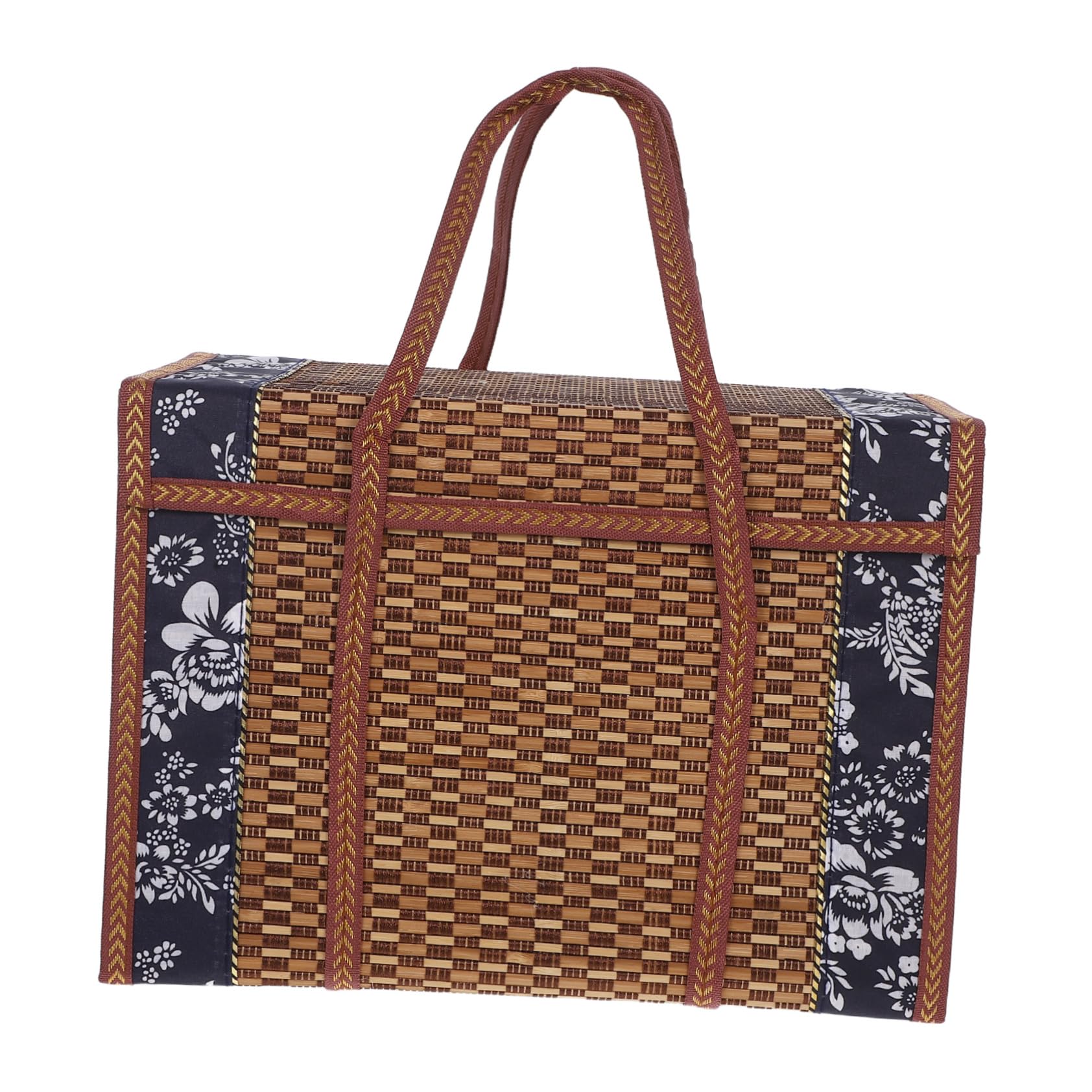 Yardwe Folding Woven Fruit Basket with Handle Portable Picnic Food Storage Basket for Outdoor Use 14.6X9.8X7.9 Inch Multipurpose Fruit and Snack Organizer