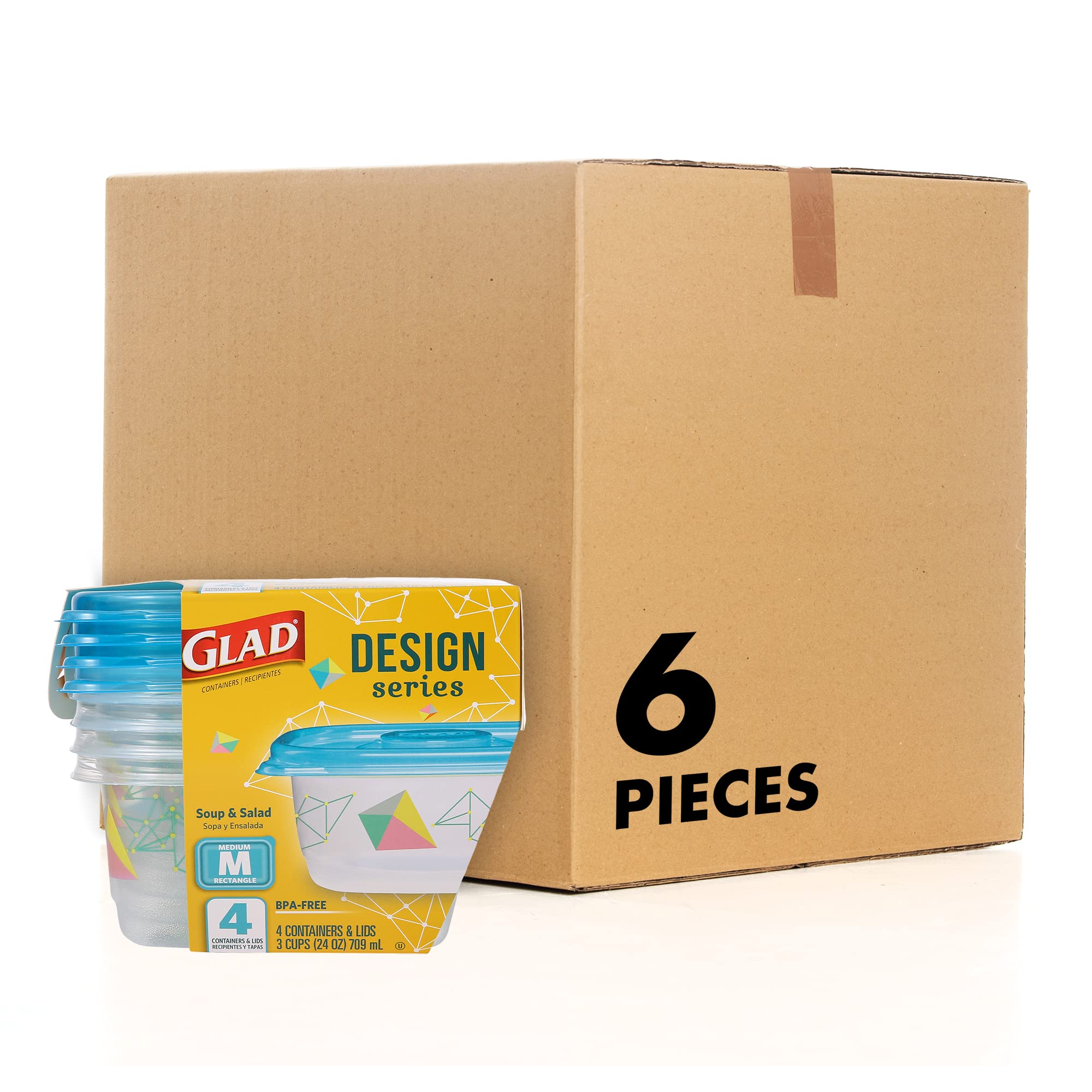 Glad GladWare Design Series Food Storage Containers with Lids, Medium Rectangle BPA Free Plastic for Meal Prep and Lunches, Tight Seal, Microwave and Dishwasher Safe, 24 Oz, 4 Count - 6 Pack