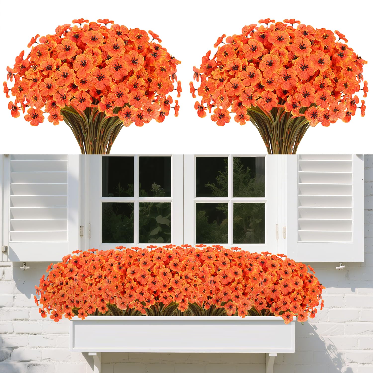Wteyi 22Bunches of Outdoor Artificial Flowers, UV Resistant Fake Flowers Artificial Silk Flowers with Plastic Plants for Indoor Outdoor Front Porch Hanging Planter Decoration (22, Light autumn orange)