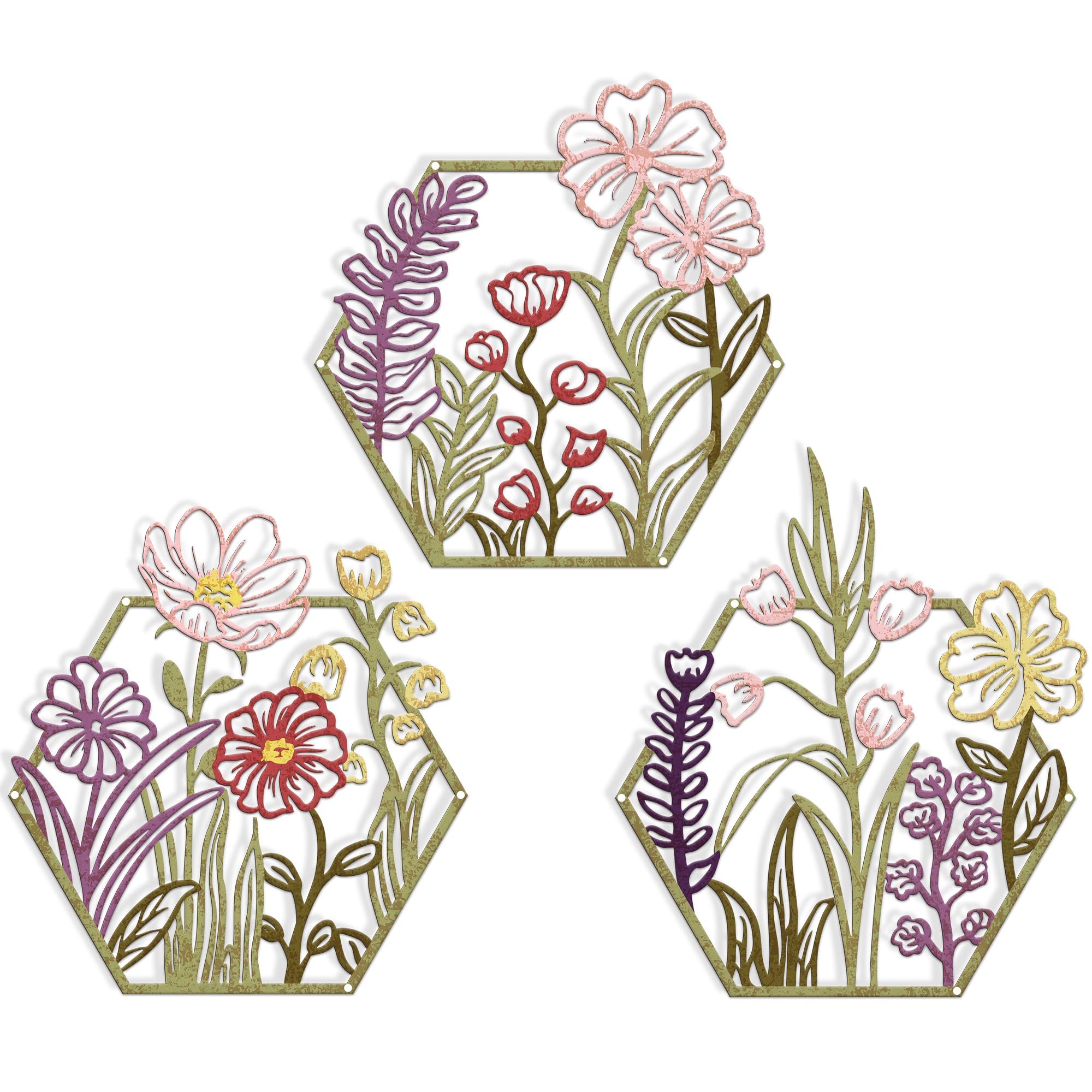 CarryWise 3 Piece Metal Flower Wall Art for Bedroom Living Room Rustic Farmhouse Floral Wall Decor for Bathroom Dining Room Boho Home Decorations Modern Minimalism Hanging Sculptures Polygon