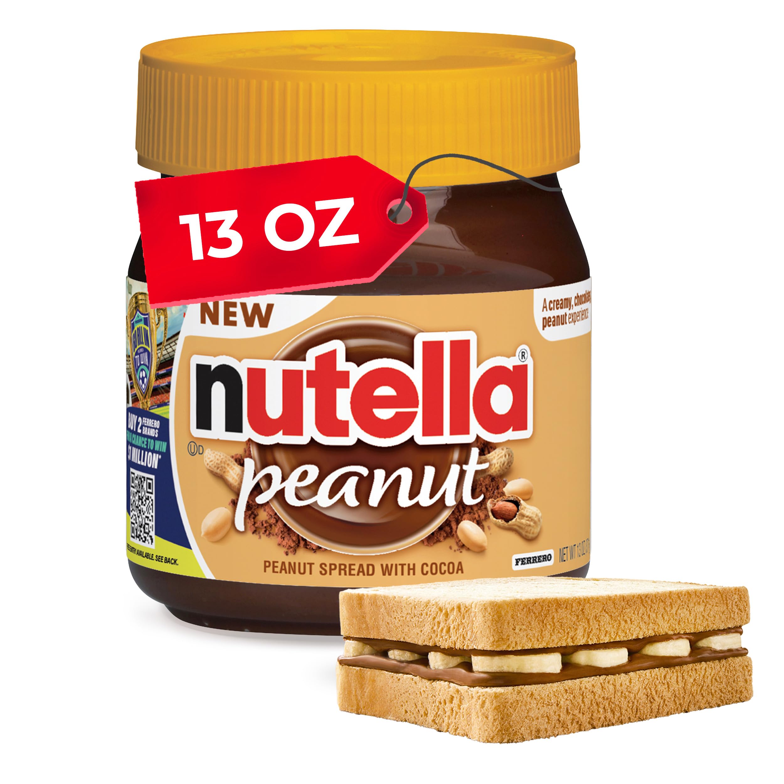 Nutella Peanut Spread With Cocoa, Smooth and Creamy, for Afternoon Snacking, Family Gifts, Unique Snacks, 13 oz